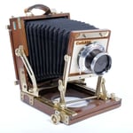 This Nagaoka MKII is a small form factor, ultralight, folding field 4X5 camera. At under 3LBS it is a compact and light option for backpacking, while still offering good rigidity and modest movements. Upgraded with a bright fresnel screen and made of centuries old dried Japanese cherry wood, this is a true to testament to the incredible craftsmanship of the Nagaoka workshop, that was family operated for over 100 years. This particular camera was sold under Calumet's home brand as an ultralight option.